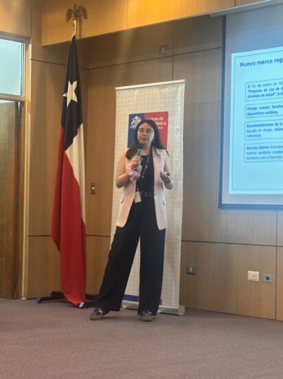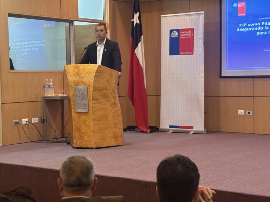 Posteriormente, se dio paso a un bloque de presentaciones temáticas por parte de especialistas del ISP. El Dr. Jeremy Salas, jefe del Departamento de Laboratorio Biomédico Nacional y de Referencia, expuso sobre el rol del ISP como pilar estratégico en salud pública, abordando el aseguramiento de la calidad y la vigilancia diagnóstica para la Región de Valparaíso. A continuación, la física Catalina Ramírez, del Departamento Agencia Nacional de Dispositivos Médicos (ANDIM), presentó la ponencia “Fortaleciendo la salud pública a través de la evaluación de la calidad de los dispositivos médicos”, destacando la importancia de estos procesos para la seguridad de pacientes y equipos de salud.