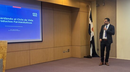 Más adelante, el Q.F. Jorge Canales, jefe del Departamento Agencia Nacional de Medicamentos, abordó la temática “Resguardando el ciclo de vida de productos farmacéuticos y cosméticos: impacto regulatorio en la salud pública”, detallando cómo la regulación y fiscalización en cada etapa —desde la producción hasta la dispensación— inciden directamente en la protección de la población.