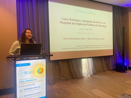 En la misma línea María Loreto Espinoza Tillería, profesional del Departamento de vigilancia sanitaria e investigación del ISP, expuso la investigación llamada “Calor extremo y aumento de accidentes cerebrovasculares (ACV) en un hospital de urgencia pública en Santiago de Chile”.