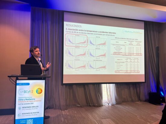 Rolando Vilasau Domínguez, profesional de la sección Riesgos Químicos del ISP, presentó el estudio titulado “Asociación entre temperaturas extremas y accidentes laborales en la Región Metropolitana de Chile entre los años 2012 y 2019”. Esta investigación, analiza la relación entre la ocurrencia de accidentes de trabajo y los episodios de calor extremo registrados en la capital, evidenciando cómo las condiciones térmicas elevadas pueden aumentar el riesgo de incidentes laborales, especialmente en sectores de alta exposición ambiental como la construcción y el transporte.